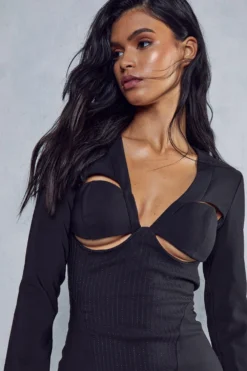Tailored Collarless Plunge Blazer Dress